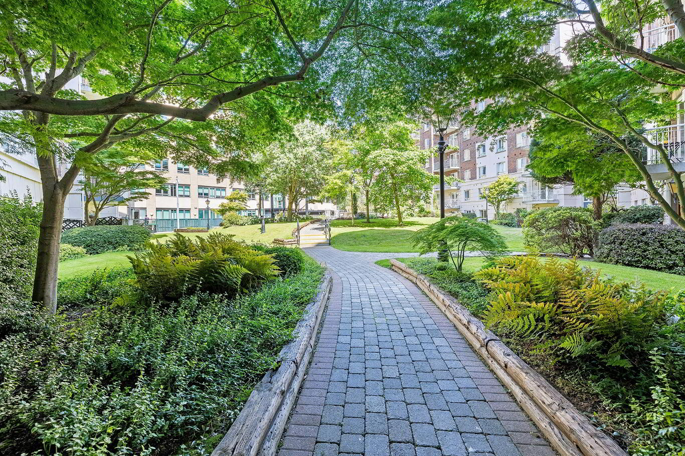 Balcony overlooking communal garden.