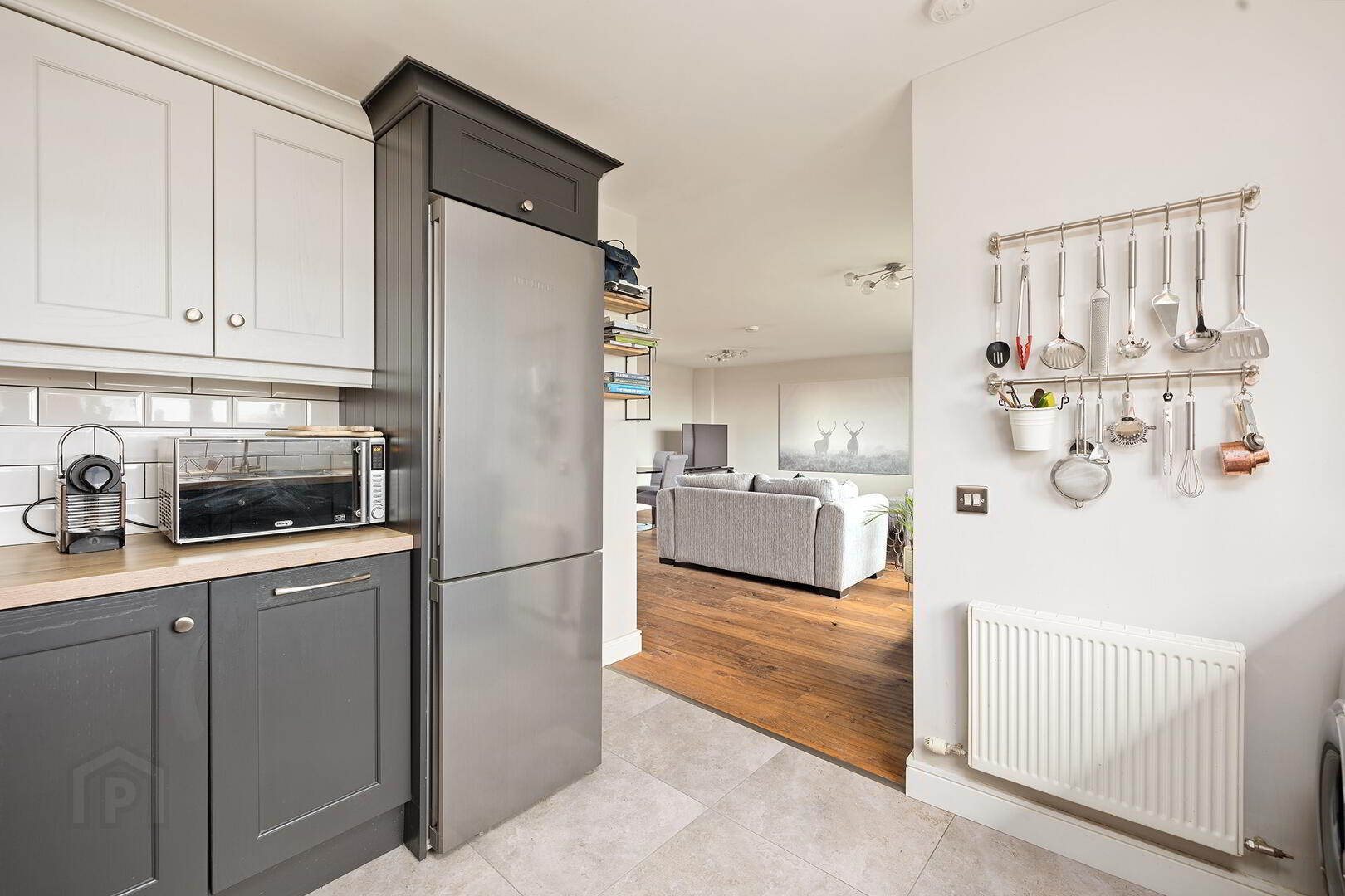 Extending to approximately 947 square feet, this spacious two-bedroom apartment offers well-proportioned accommodation throughout. The layout comprises an inviting entrance hall with both storage and hot press cupboards, a contemporary two tone, shaker style kitchen complete with gas hob, and a generous dual-aspect living room opening onto two sheltered balconies. There are two bedrooms, including a primary bedroom with en-suite, as well as a main bathroom.