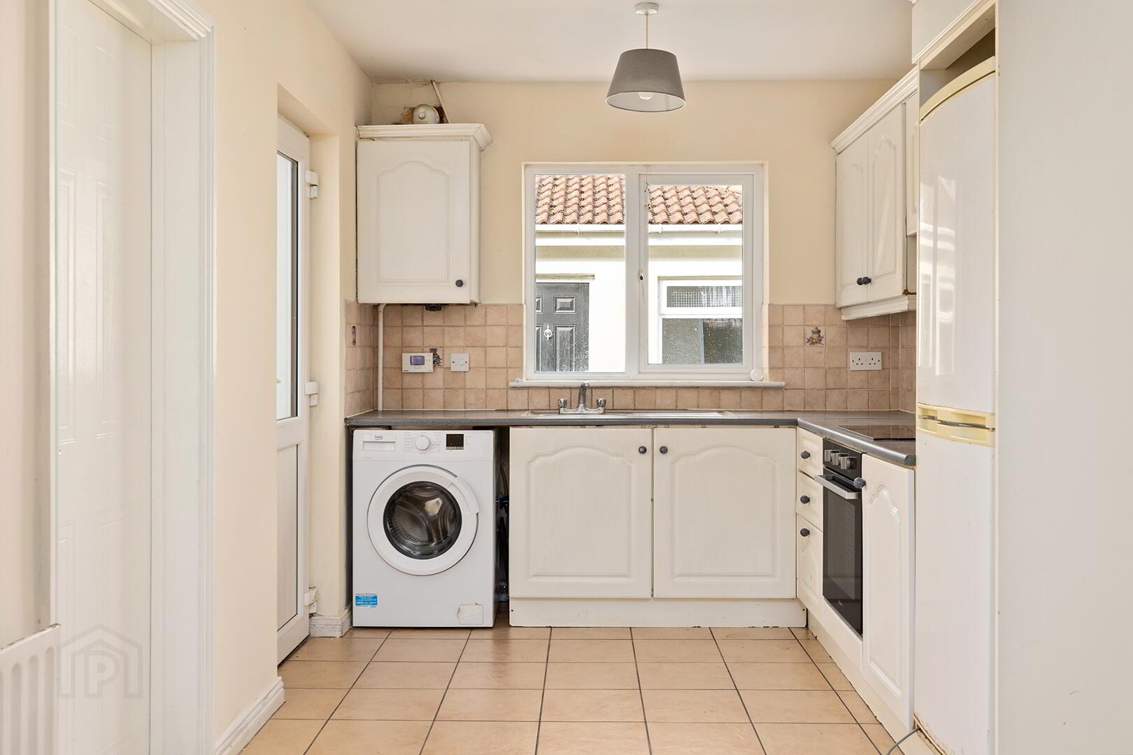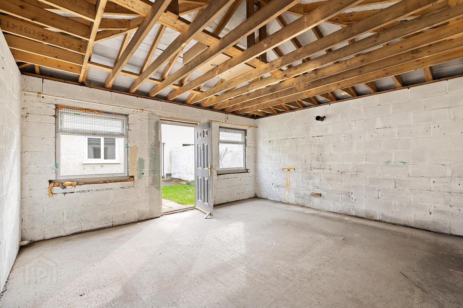 Externally, the rear garden is fully walled and laid in lawn, with the benefit of a gated side passageway. The substantial block-built shed features two double-glazed windows, a composite door, a pitched tiled roof, and a poured concrete floor, providing a versatile additional space. To the front, the property enjoys a walled lawn and a poured concrete driveway offering convenient off-street parking.