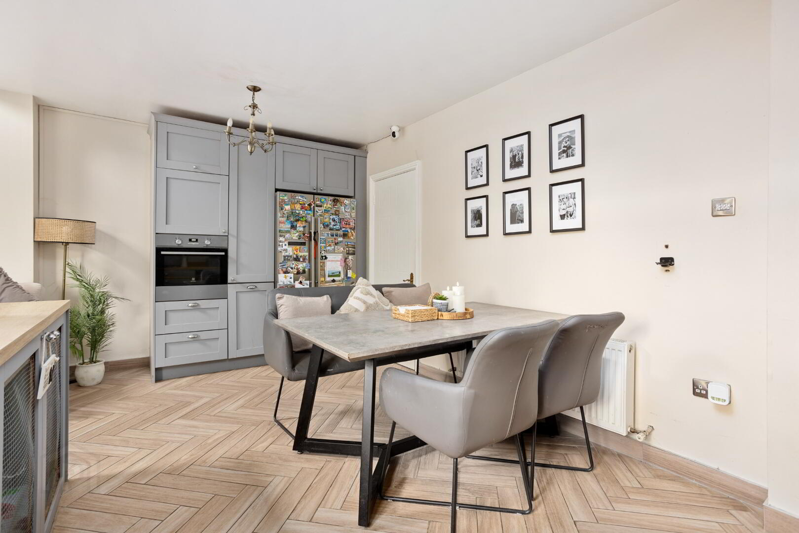 Kitchen / Dining Room: L-shaped with extensive range of quality dust grey kitchen units at floor- and eye- level (soft closing), Halifax oak work tops and upstands, new gas hob, Faber extractor fan, integrated new Beko dishwasher, integrated Electrolux oven, herring bone tiled floor, skylights, additional shelving in living area, wall lighting, access to utility room and access to rear garden.