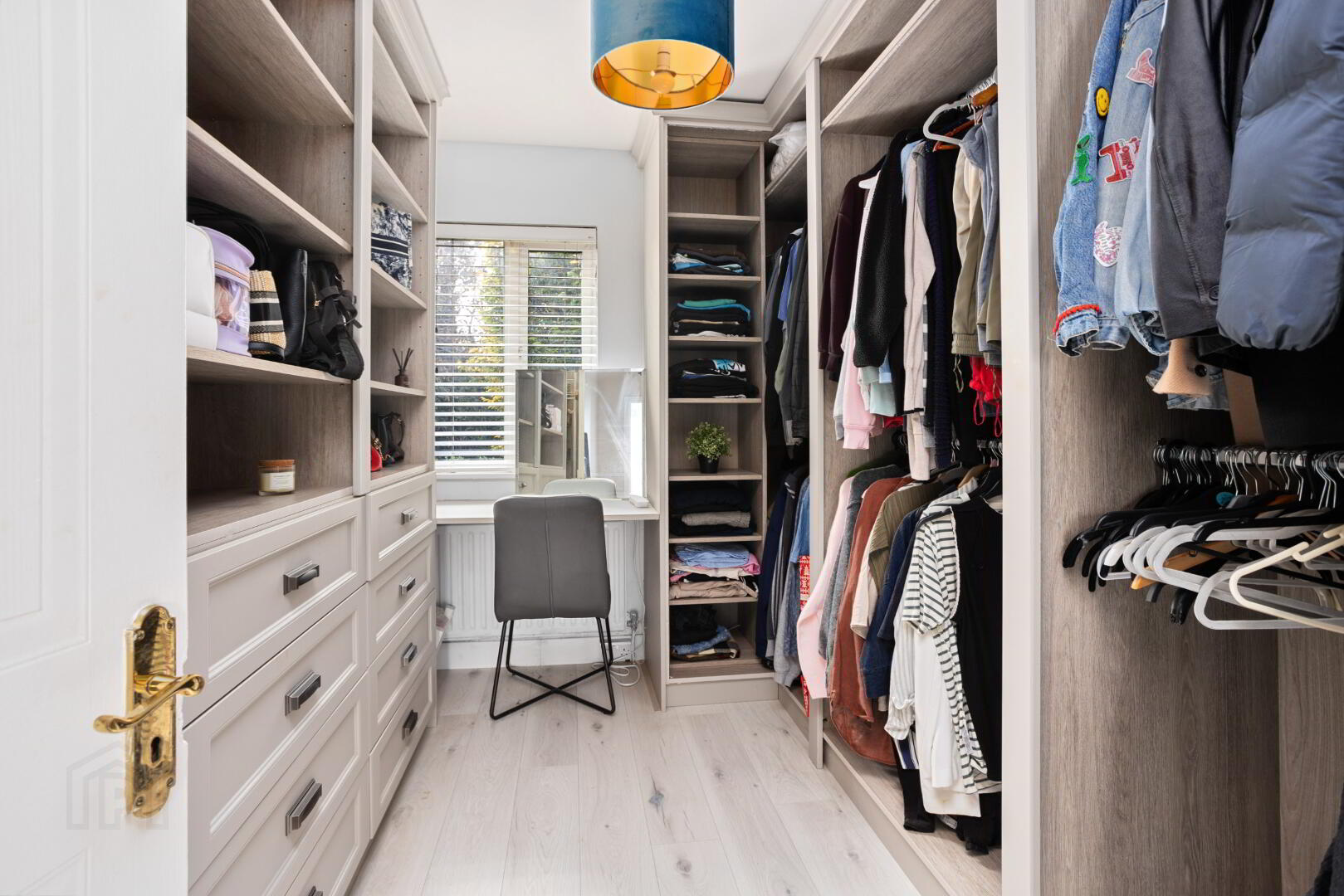 Ample storage throughout including walk-in wardrobes, utility room with shelving.