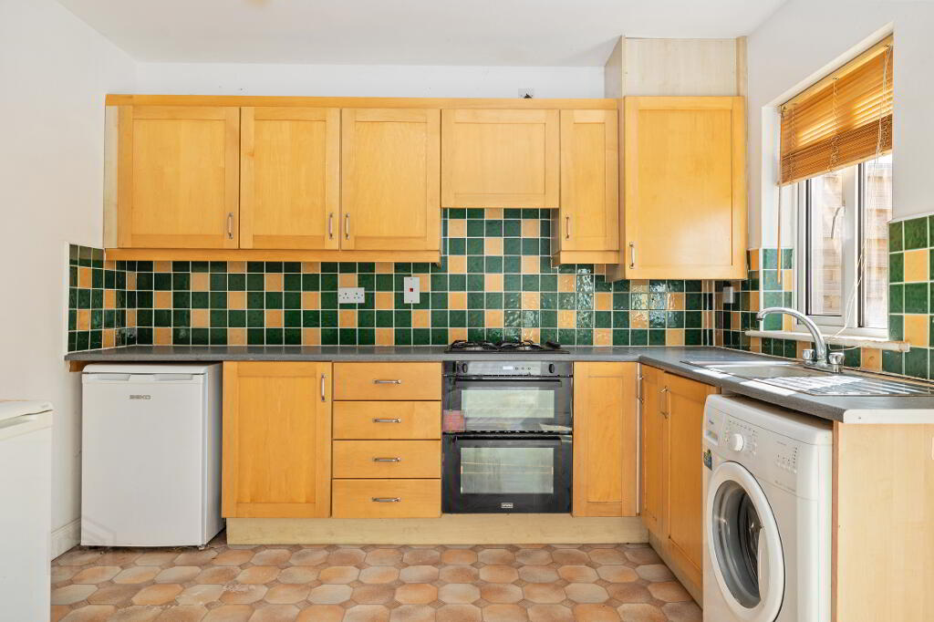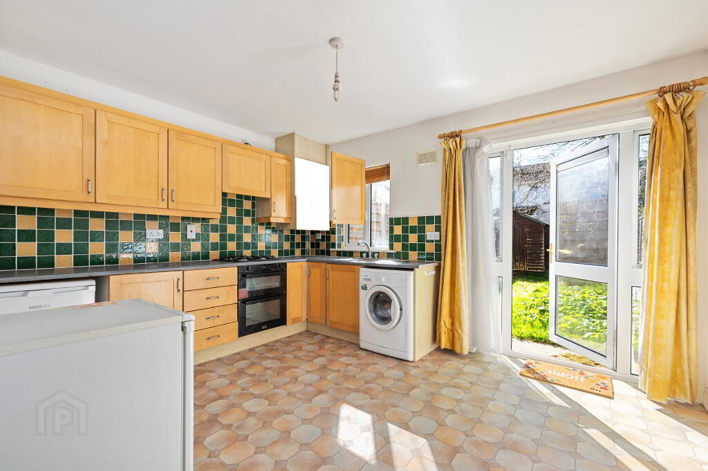 Upon entry, a porch leads into a bright and spacious reception room. This inviting living area features under-stairs storage and a fireplace that creates a cosy focal point. To the rear of the property lies a light-filled kitchen and dining area, benefiting from a sunny southerly aspect and direct access to a private rear garden, which is neatly laid out in lawn—perfect for outdoor enjoyment.