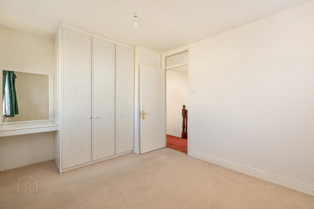 Upstairs, the home comprises two generously proportioned bedrooms, both complete with built-in wardrobes to maximise storage. A sizeable landing provides additional storage space, while the accommodation is completed by a well-appointed bathroom featuring a bathtub and overhead shower.