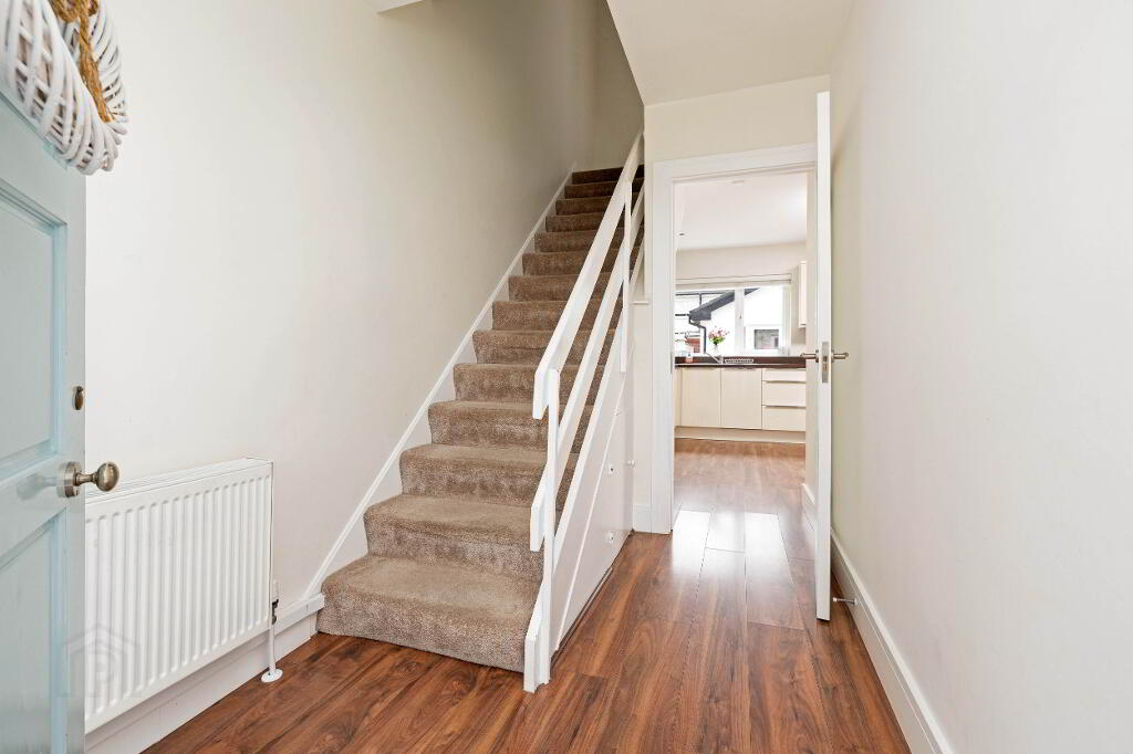 Extending to approximately 872 sq. ft., the accommodation comprises an entrance porch, hallway, and a bright open-plan kitchen, dining, and living area. Upstairs, there are three generously sized bedrooms, including a master with en-suite, along with a main family bathroom.