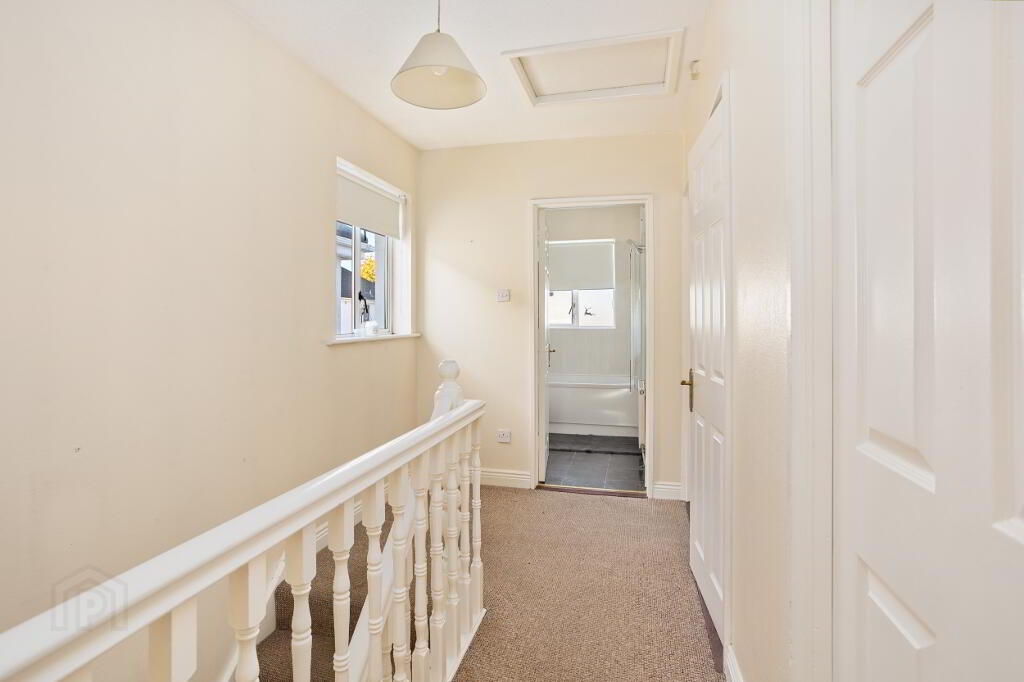 Landing with hot press cupboard and attic access.