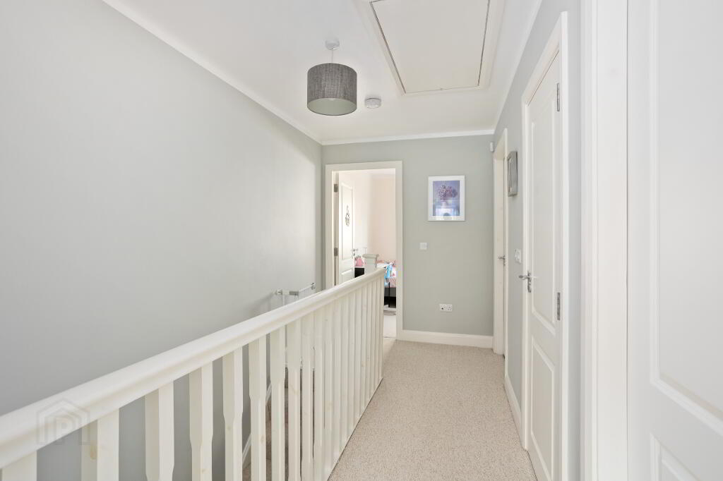 Landing: 3.87m x 2.02m with carpet, pull down ladder access to attic and large Hotpress (1.50m x 1.14m).