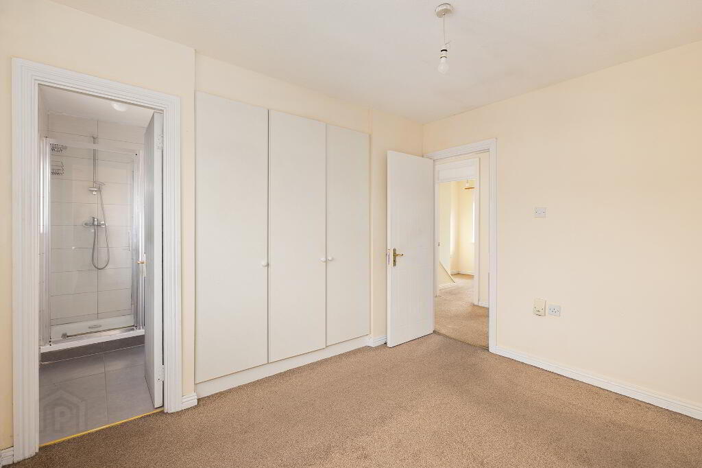 Bedroom 2 with carpet and fitted wardrobes.