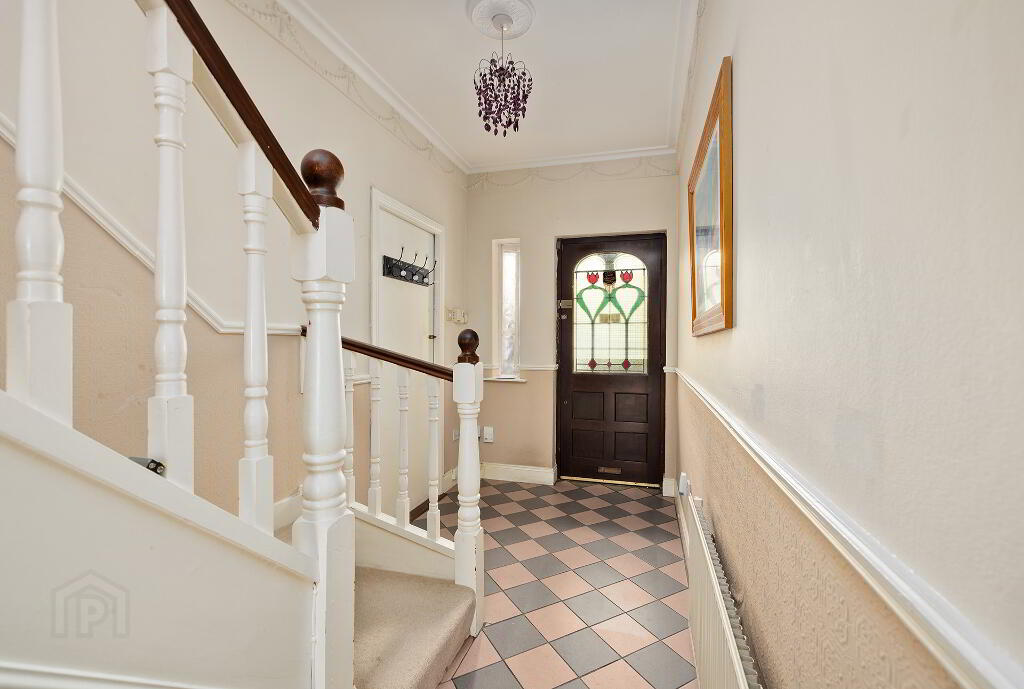 Entrance Hallway: with tiled flooring, internal access to garage, ceiling coving and centrepiece, alarm point.