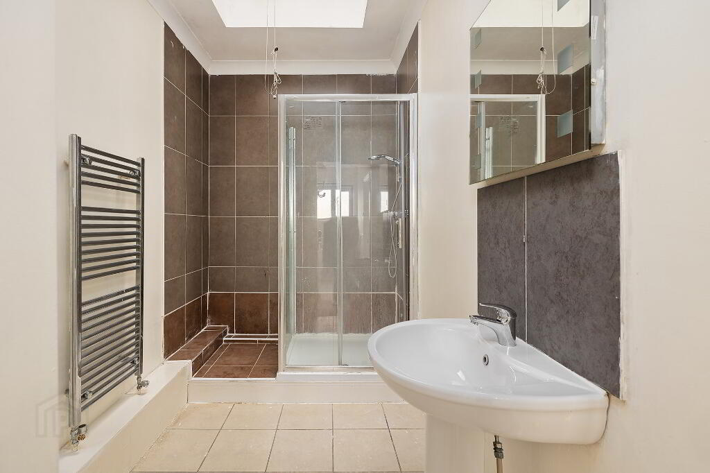 En-suite: with fully tiled shower unit, wc, whb, tiled floor, partly tiled walls, extractor fan.
