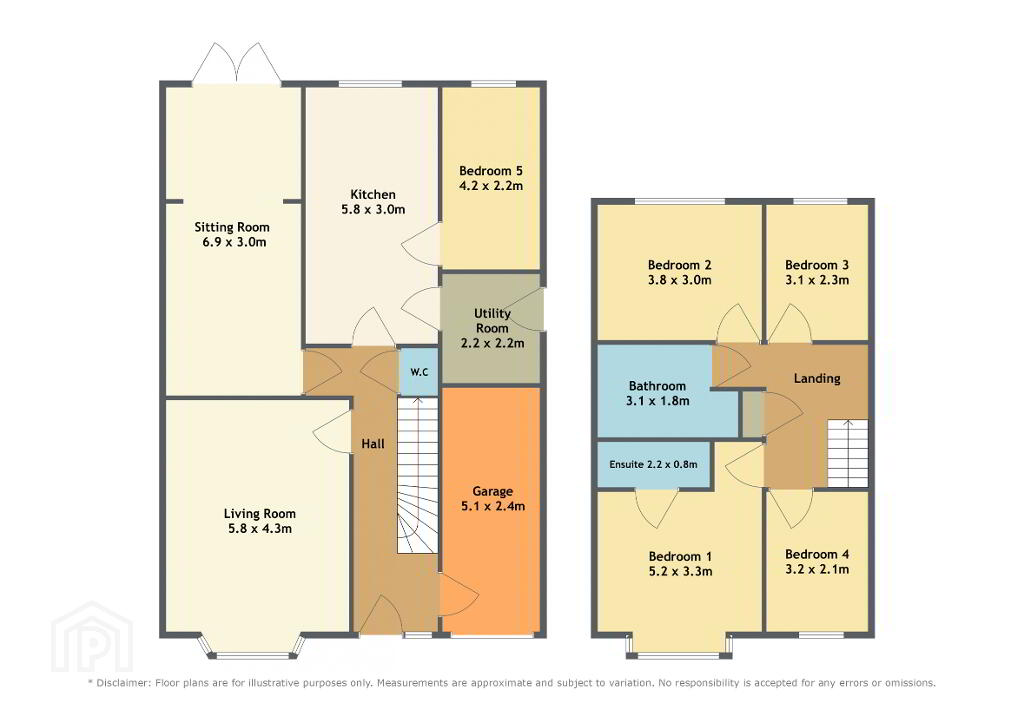 Garage (5.07 x 2.65) accessed by front (and internal)