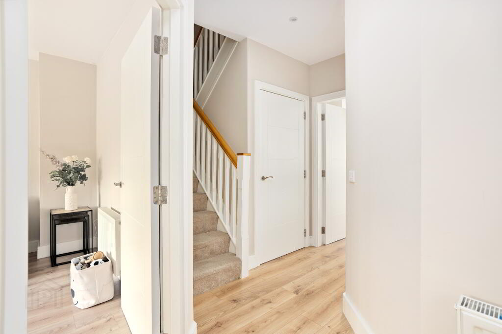 Entrance Hall: high quality composite front door, wood floor and alarm point.