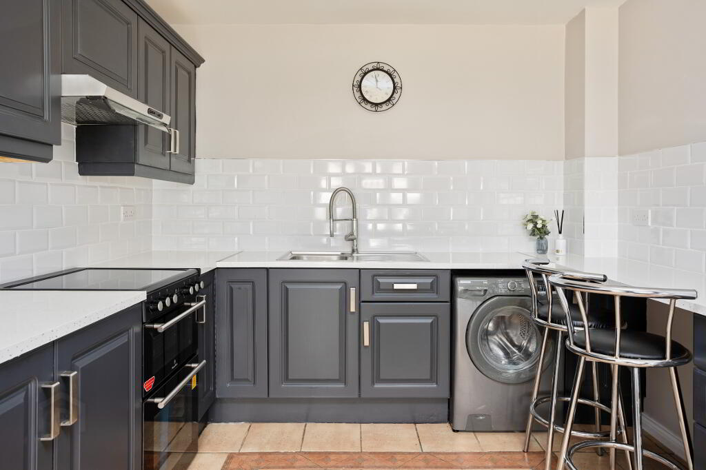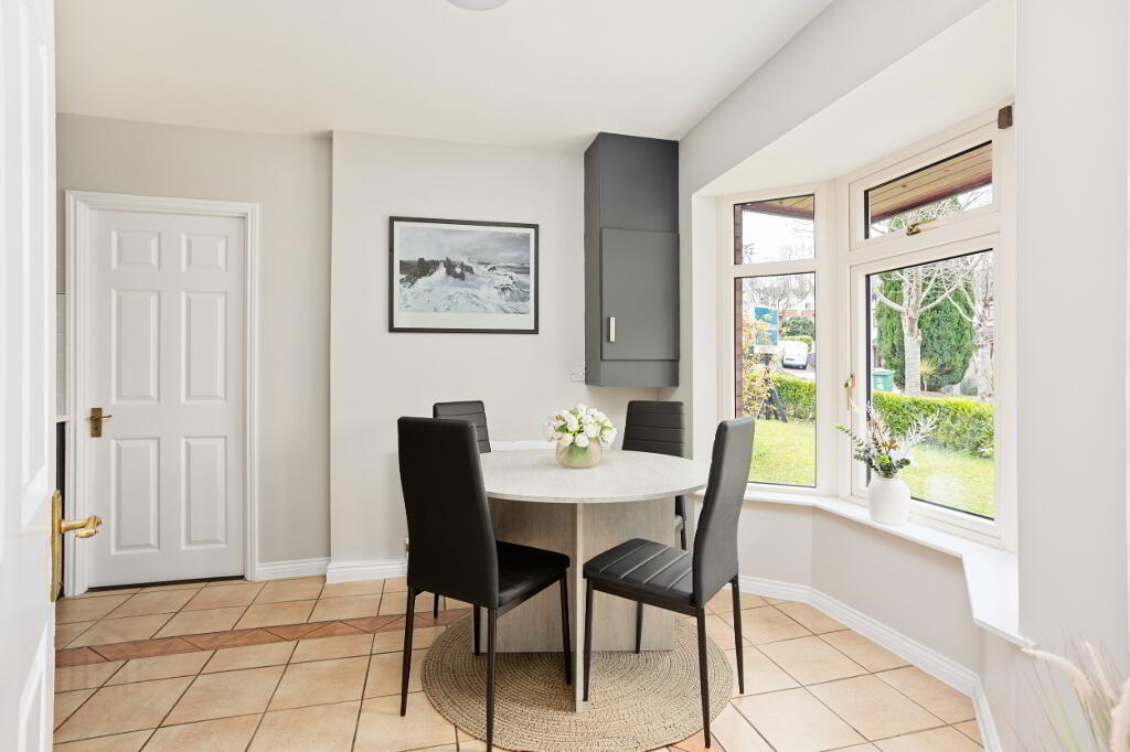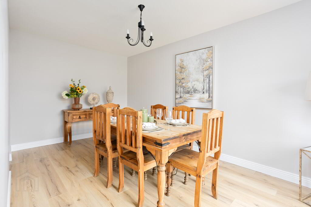 Extending to approximately 1,119 sq. ft. (104 sq. m.), No. 4 Brookvale represents an outstanding turnkey opportunity for the discerning purchaser. The property is bright, spacious, and thoughtfully designed throughout. The ground floor comprises a welcoming entrance hallway with copmosite front door, guest WC, a comfortable living room, and a generous bay-windowed kitchen to the front, which flows seamlessly into a versatile second reception room, suitable for dining or a variety of other uses. Direct access from the living area to the garden patio further enhances the sense of indoor-outdoor living.