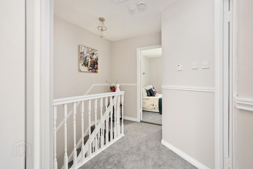 Landing with dado rail, new freshly laid carpet, Hotpress storage cupboard and attic access.