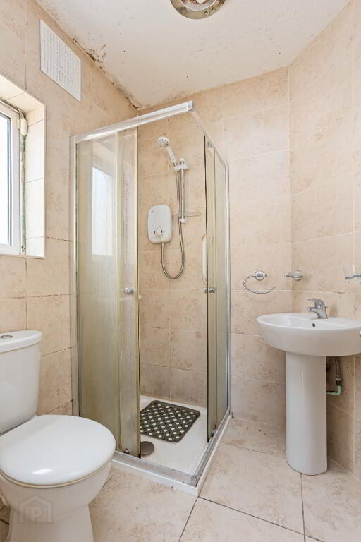 Main Bathroom: fully tiled, tiled floor, w.c., wash hand basin and bath with shower.