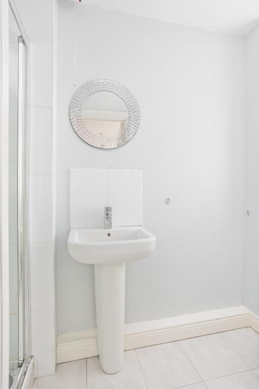 En-suite: 2.70m x 0.94m with tiled floor, window, WC, WHB, shower enclosure and Mira Elite SE.