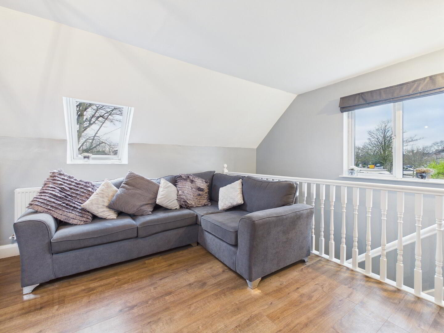 Hallway with eaves storage.