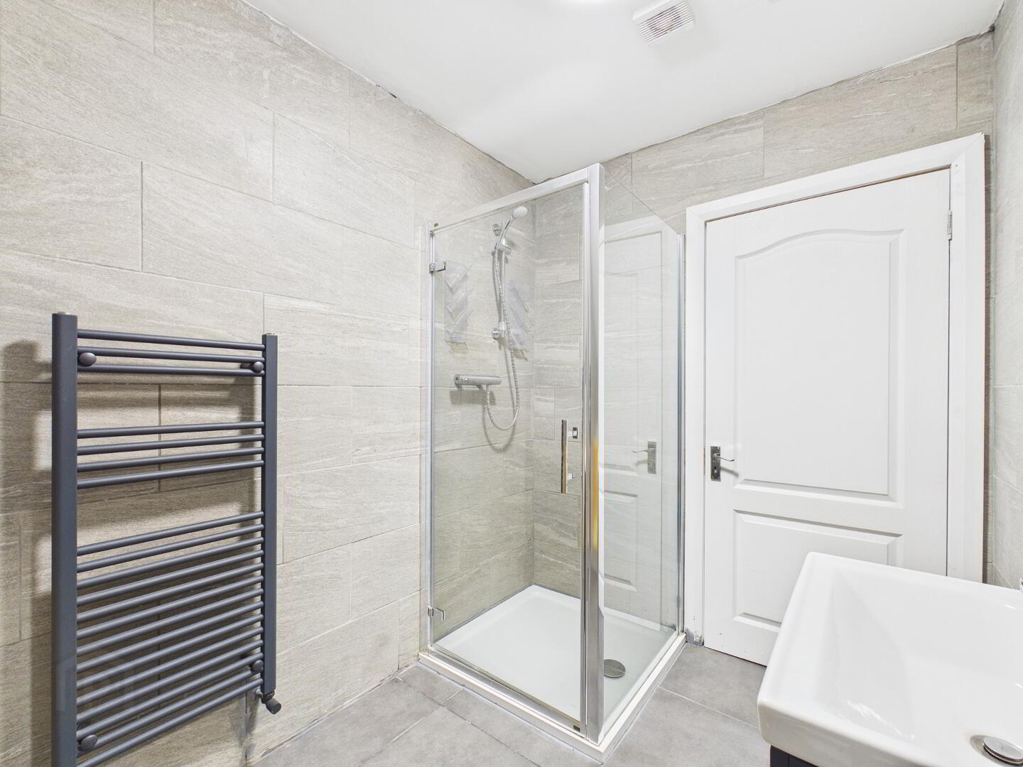 Shower room – fully tiled with W.C., wash hand basin, heated towel rail and electric shower.